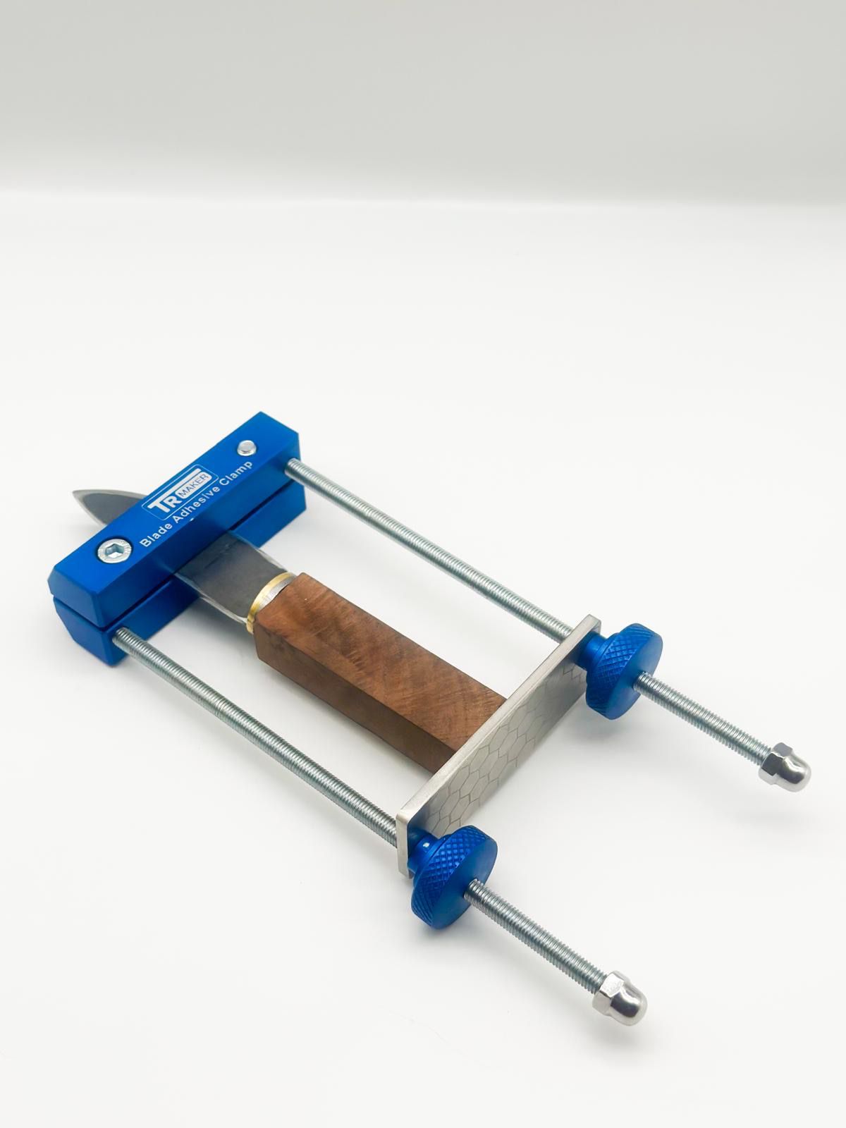 This is not an invention, many knife makers create their own glueing system – often requiring hours of time to create. This blade handle gluing system will save you the trouble of creating one and give you a secure, reliable method of clamping the blade and handle together during glueing-up.